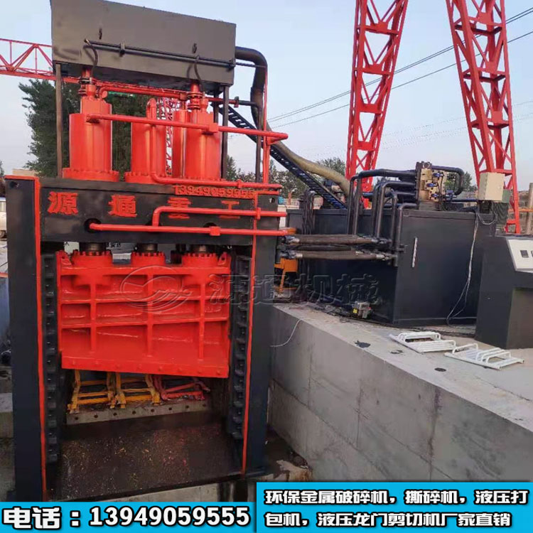 液壓龍門剪又叫做全自動液壓龍門剪斷機,龍門式液壓剪切機適用于金屬回收加工廠、報廢汽車拆解場、冶煉鑄造行業,對各種金屬進行冷態剪斷,加工成合格爐料。源通機械龍門式剪切機,剪切力400噸至1800噸。主要被剪切材料尺寸(12~20mm)*250mm。剪切次數每分鐘8~12次。該系列需簡單基礎設施。采用液壓驅動,與機械傳動式剪切機相比具有體積小、重量輕、運動慣性小、噪音低、運作平穩、操作靈活、剪切斷面大等特點。液電一體化控制、可實行單次、連續動作轉換、使用簡單方便、可在任意工作位置停止、運行、易于實現過載保護。適用范圍廣泛,既可作金屬回收加工單位的加工設備,又可作為工廠鑄造車間的爐料加工和機械建筑行業的金屬剪斷加工設備。